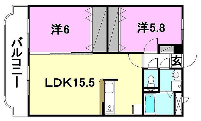 /全部屋洋室の人気2LDKマンションです。リビングに隣接した洋室と、離れたところに洋室がありとても使いやすい間取りです。国道33号線が近い為、スーパー・コンビニ・バス停と徒歩圏内で揃っております。/[日本エイジェント管理物件 いつでも安心快適!]