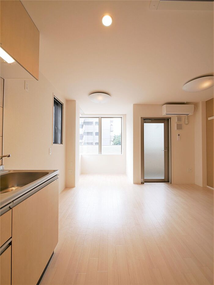 ガスコンロ、エアコン、照明付きなので新しく一人暮らしをされる方へもお勧め。