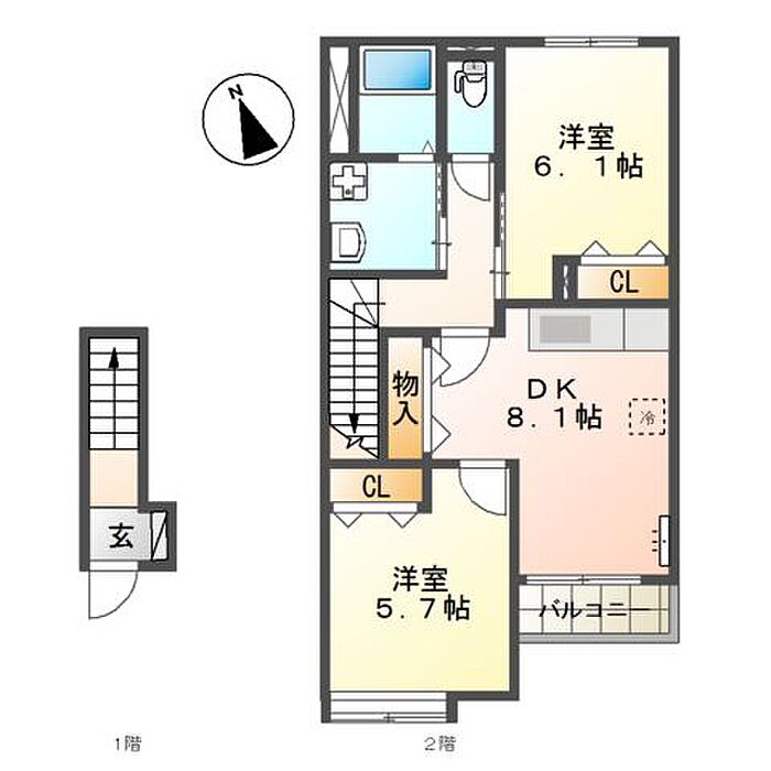 エトワール 2DK/2階
