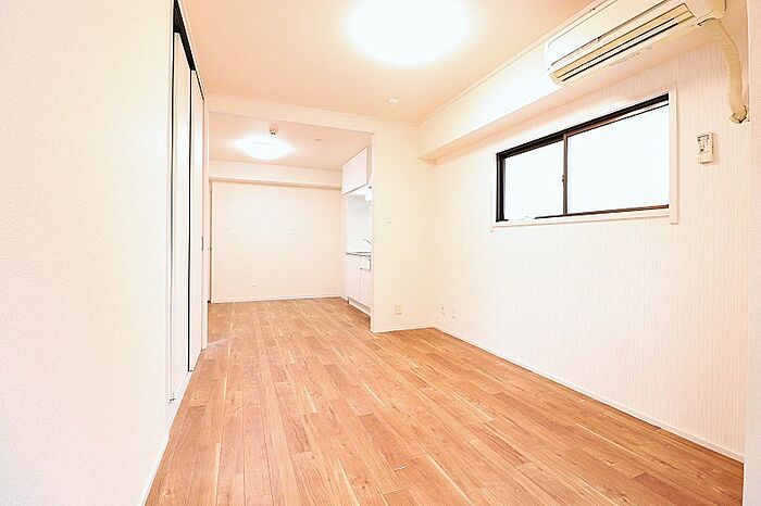 フルリノベーションで広々リビングがに人気の1LDKへ♪バストイレ別/独立洗面台/温水洗浄便座/エアコン(残置物)/室内洗濯機置き場/ガスコンロ2口/クローゼット2か所/シューズボックス/バルコニー/インターネット光/防犯カメラ/敷地内ごみ置き場