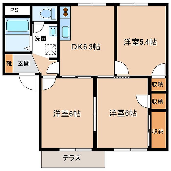 フレグランス野保里B 3DK/1階