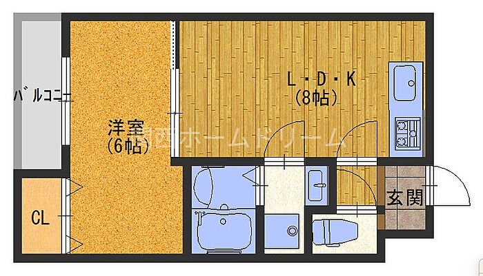 1LDKはキッチンスペースが広々しており、ゆったり出来る空間が広がっています。ゆったりと自分の時間を過ごしませんか?落ち着く空間でストレスフリーな住まいを。お部屋探しなら管理物件も多い、関西ホームドリームまでお気軽にご連絡ください。
