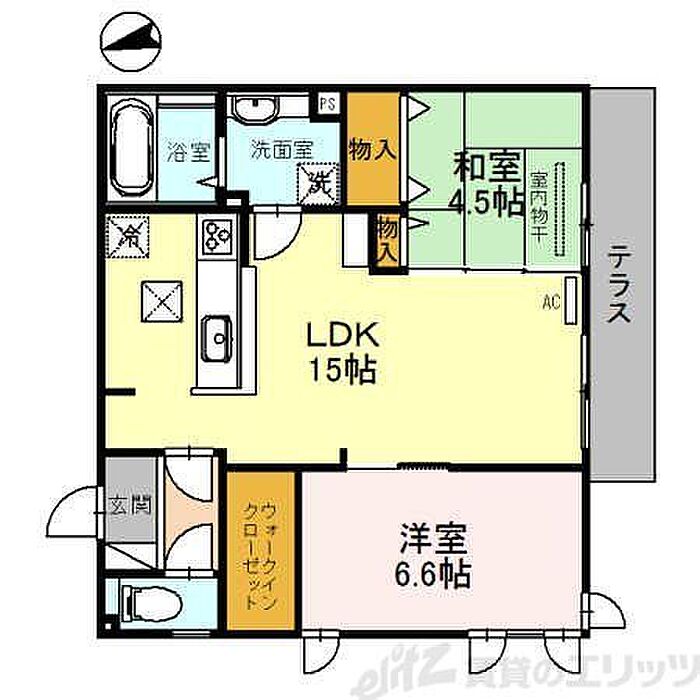 箕面船場阪大前駅徒歩15分。2LDKタイプの間取りです。
