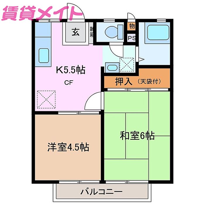 リバーハイツA棟 2DK/2階