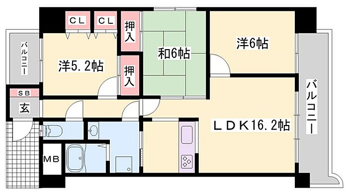 朝日プラザ野里北野町 3LDK/2階