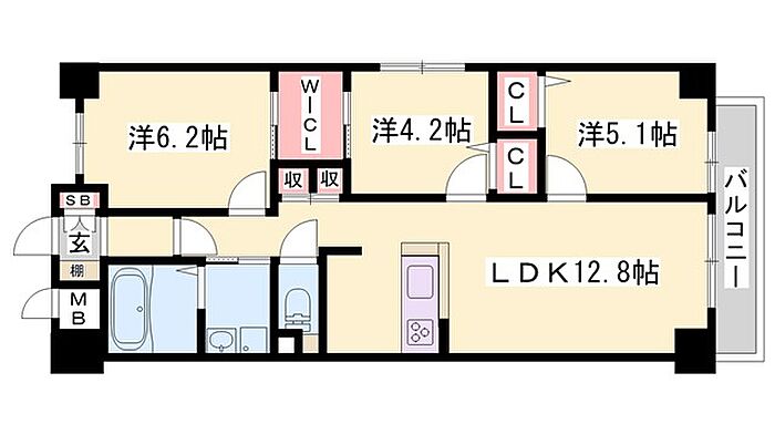 (リビングダイニングキッチン 12.8帖