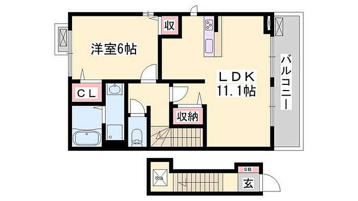アンソレイエ飾磨 II番館 1LDK/2階