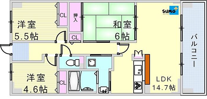 学園シティコート 902E’ 3LDK/9階