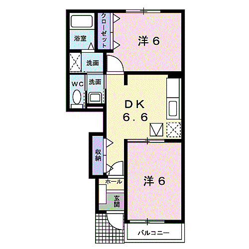 ラ・メゾン・アンソレイエIII 102 2DK/1階