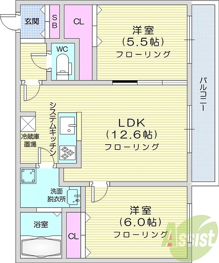 (リビングダイニングキッチン 12.6帖