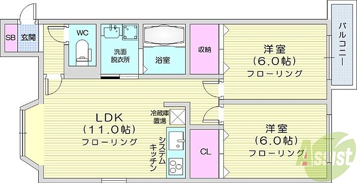 パストラル麻生東B 2LDK/3階