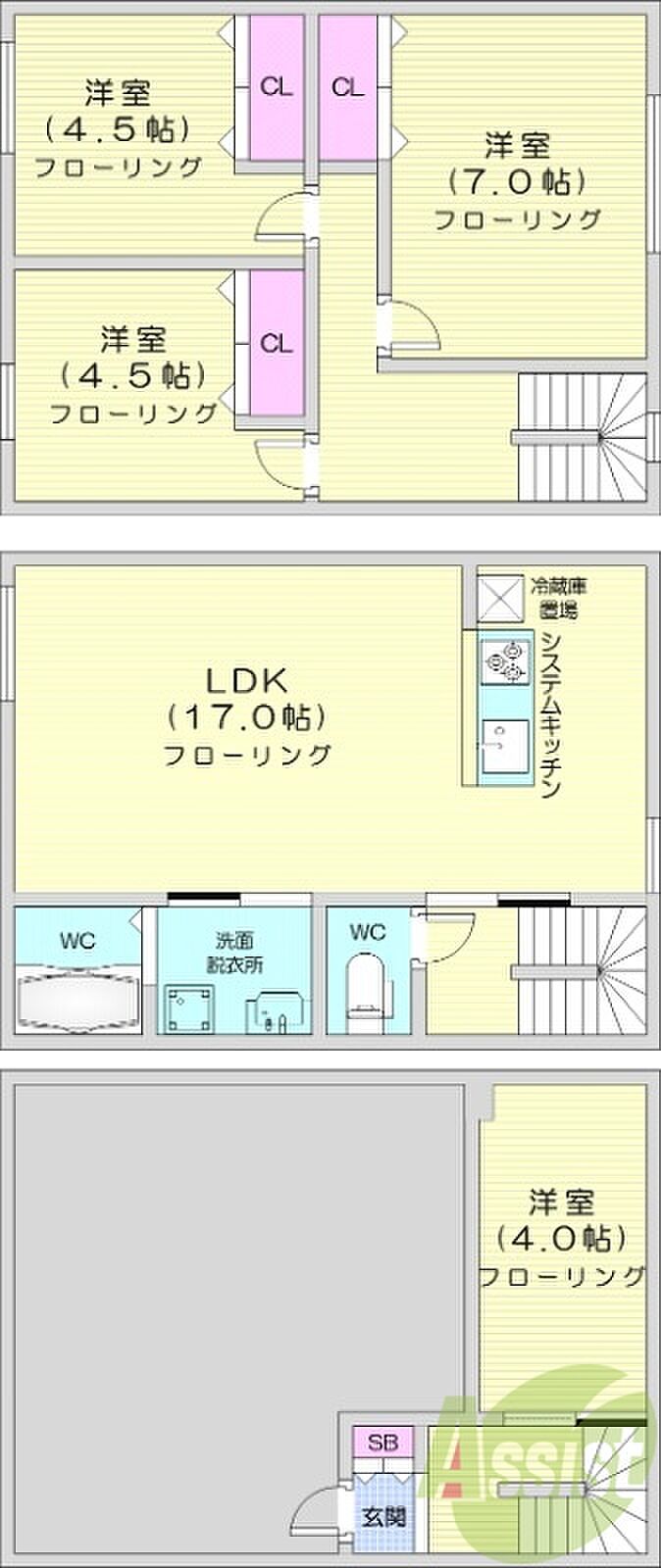 札幌市中央区宮の森二条3丁目 アパート 3SLDK/1階