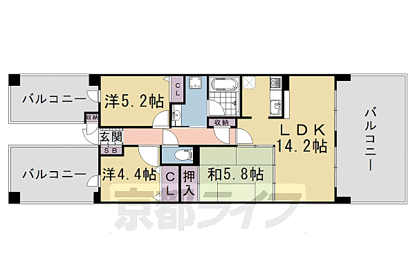 ライオンズマンション西院 3LDK/2階