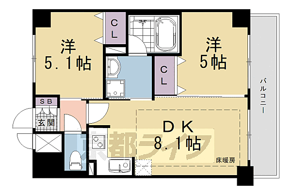 エステムプラザ京都聚楽第 粋邸 2LDK/3階