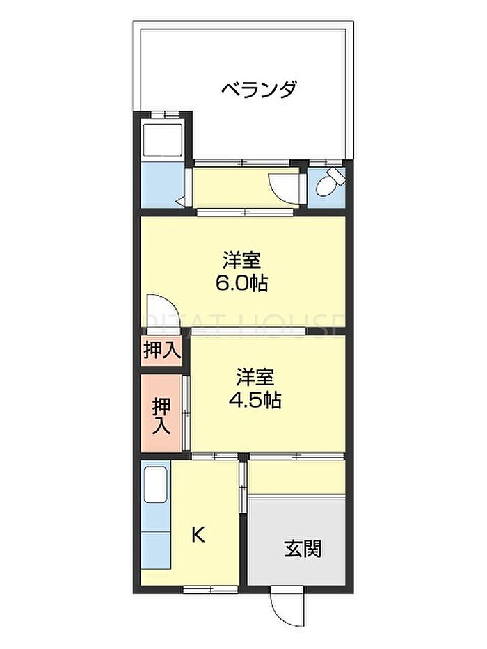 クレール六十谷 102 2K/1階