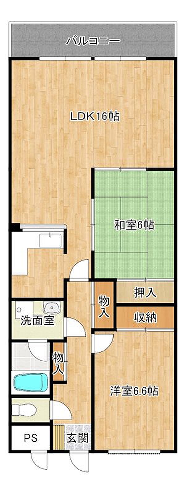 全室6帖以上の広々2LDKですエレベーター付きマンション