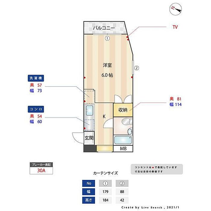 ■お掃除機能つきエアコンの場合のクリーニング費:22,000円/台(税込)■短期解約違約金:1年未満の解約で賃料+管理費1か月分■※間取り、設備等に相違がある場合は現況を優先します。