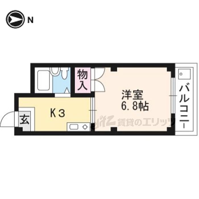 京都芸術大学まで自転車で6分、京都大学北部キャンパスまで徒歩9分のユニットバスタイプの物件です。電気コンロが1口付いています。洗濯機はベランダに設置できますよ。京都大学生におすすめです。
