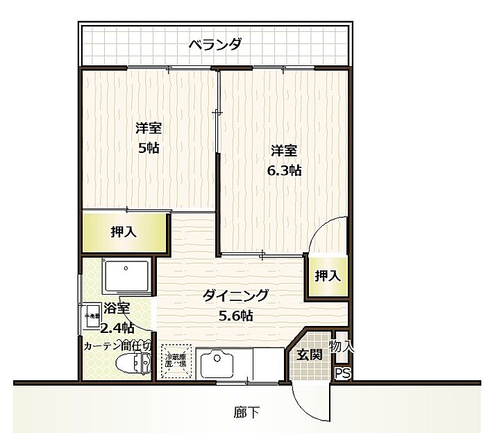 フィールハイツ 101 2DK/1階