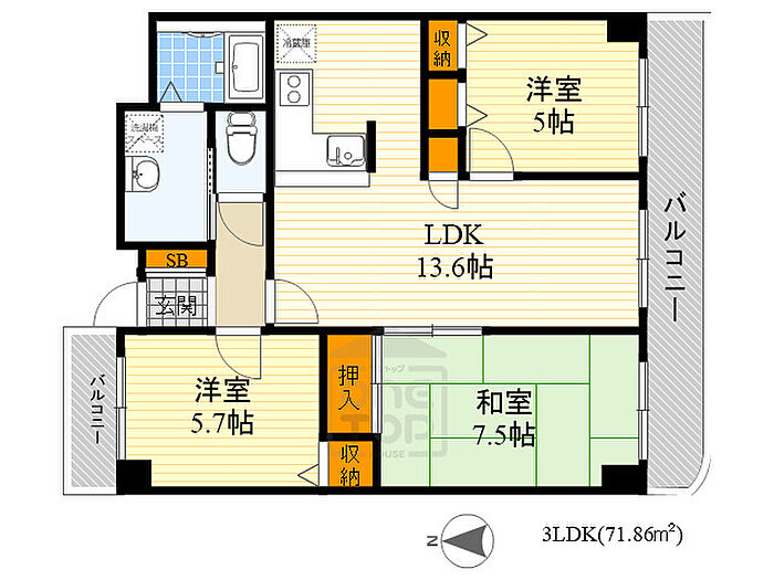 - 南面バルコニー