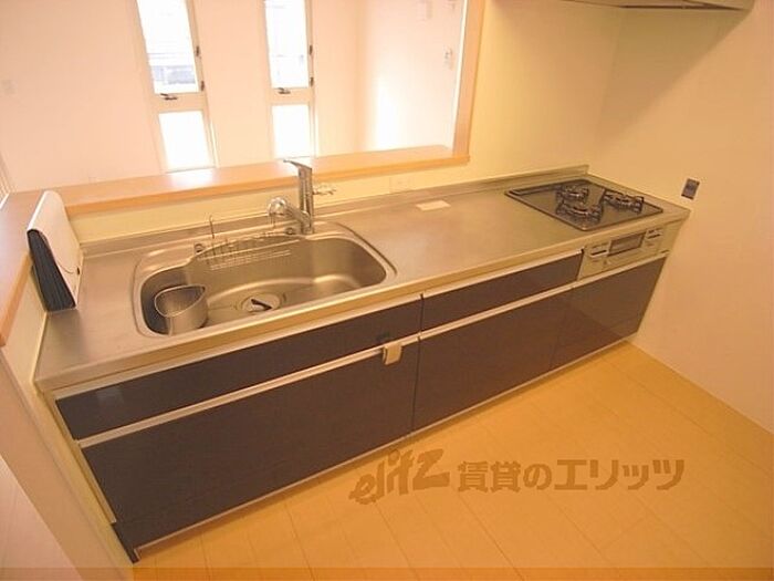 【柊野小学校区・西賀茂中学校区】システムキッチン3口ガスコンロ・追い焚き・浴室乾燥機・一坪風呂・ウォークインクローゼットと設備充実の築浅物件です。洗面台もワイドタイプで使いやすいです。