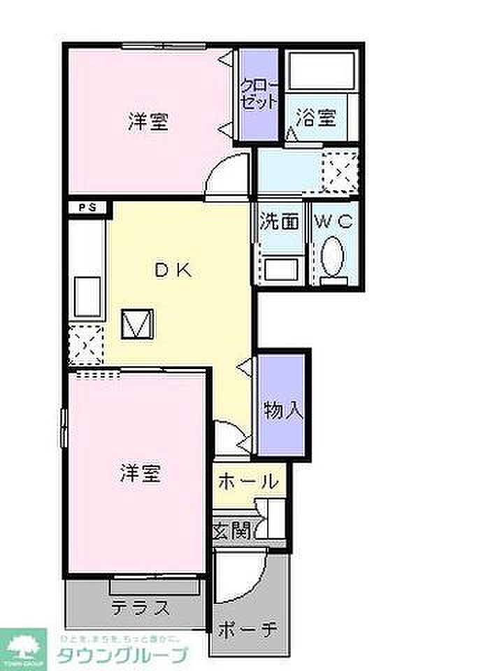 クレストヒルズII 102 2DK/1階