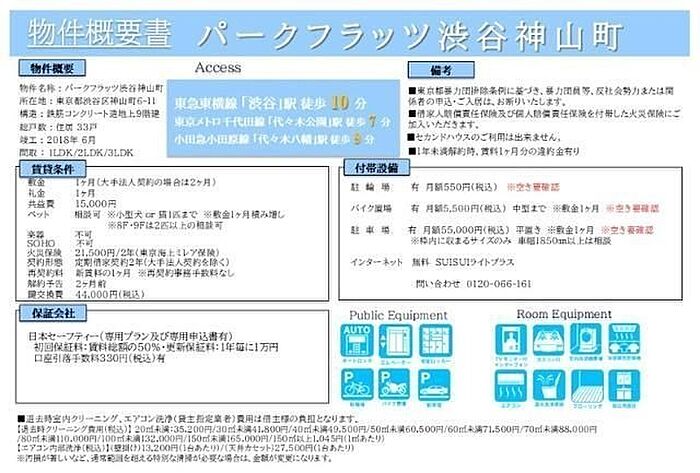 1年未満解約時賃料1ヶ月分の違約金/ペットは小型犬又は猫1匹迄飼育可(敷金1ヶ月積み増し)89Fのみ中型以上は多頭飼い相談可/大手法人契約の場合は敷金2ヶ月/CATVでBSCS視聴可(CATVBS別途契約要有償)/駐輪場代借主負担(使用時)/室内清掃費用借主負担