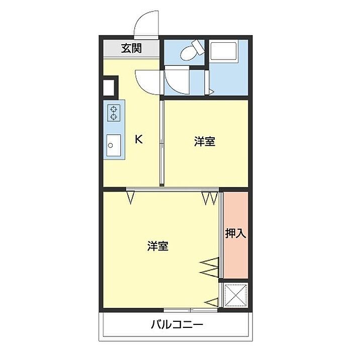 ハウスブルーネ 203 2K/2階