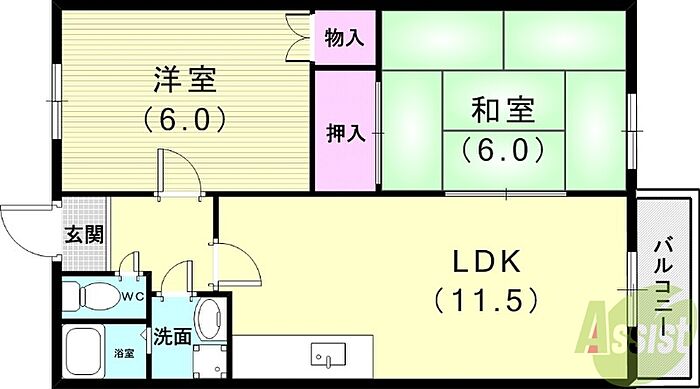 明石市山下町 アパート 2LDK/2階