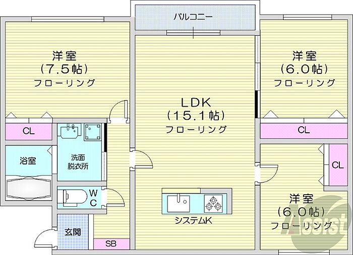 札幌市豊平区美園十二条8丁目 マンション 3LDK/3階