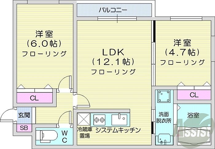 札幌市中央区南四条西21丁目 マンション 2LDK/4階