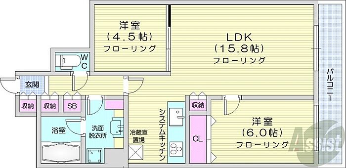 札幌市中央区南九条西1丁目 マンション 2LDK/4階