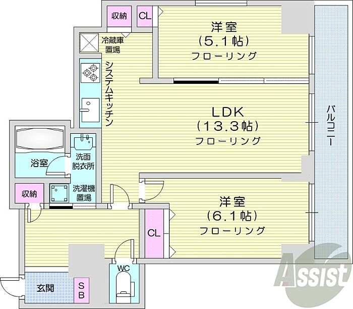 札幌市中央区大通西13丁目 マンション 2LDK/6階