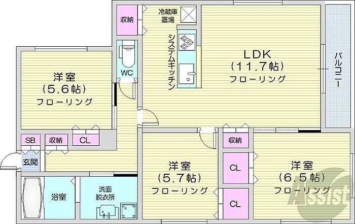札幌市西区二十四軒二条7丁目 マンション 3LDK/2階