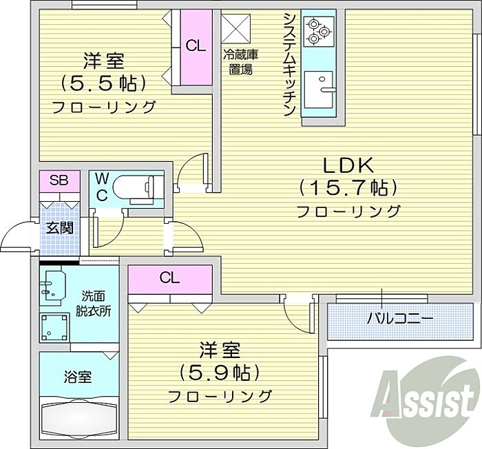 札幌市中央区南八条西17丁目 マンション 2LDK/2階