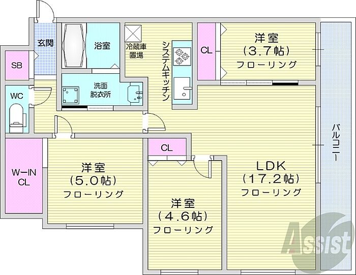 札幌市白石区本通16丁目北 マンション 3LDK/3階