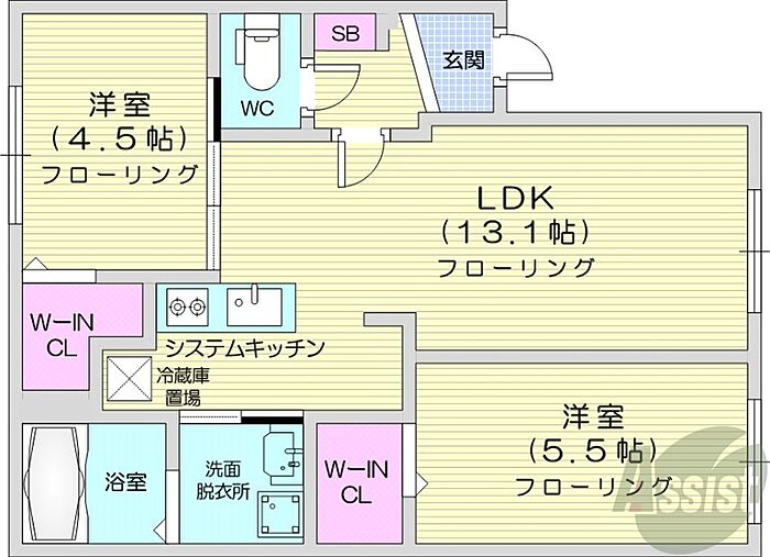 ブランシャールASABUMIDTOWN 2LDK/3階