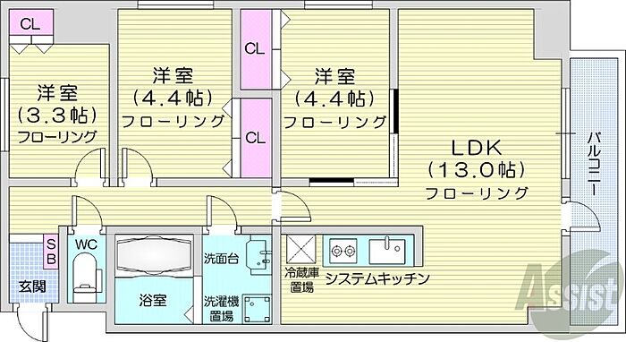 札幌市中央区南十五条西7丁目 マンション 3LDK/3階