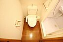 温水洗浄便座付き。洗浄だけでなく、感染症を防止して健康を守ります。バスとトイレが別室なので、トイレの床濡れを気にせず、ゆったり湯船にも浸れます。