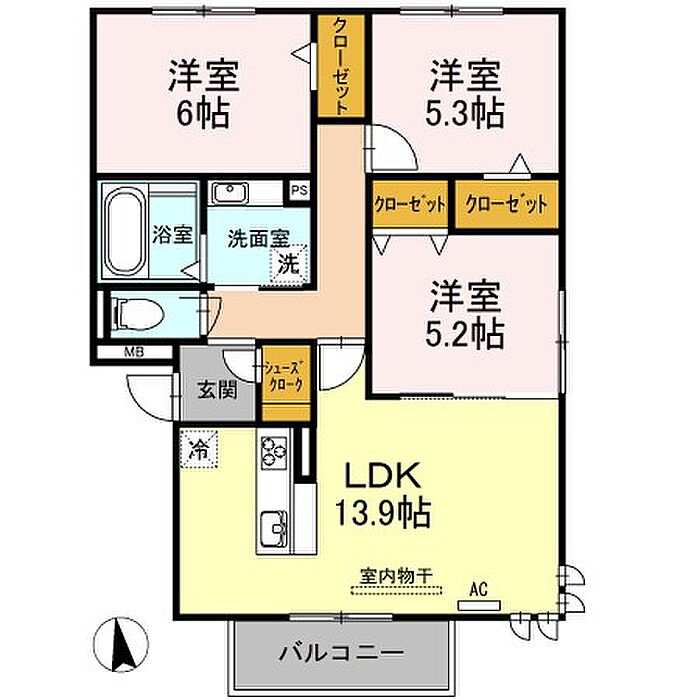 ラルジュ高峯B 3LDK/3階