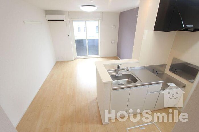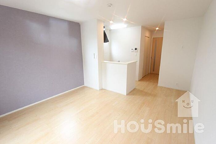 広い約12帖のワンルーム、カウンターキッチンを採用した使いやすい間取りで、家具配置もスムーズ。