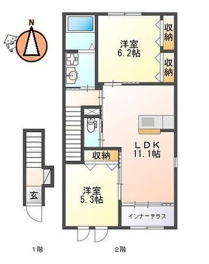徳島市北田宮2丁目 アパート 2LDK/2階