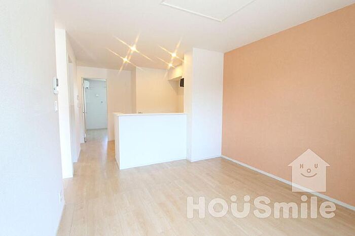 ※リビングのアクセントクロスはイエローとなります。小さなお子様がいても安心の1階のお部屋。
