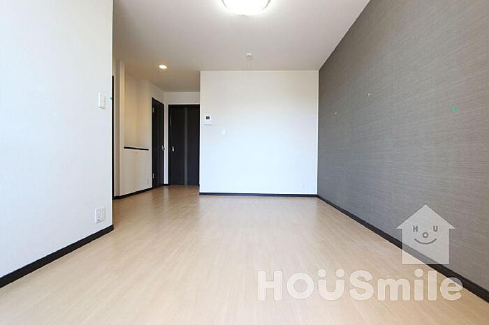 濃い色の建具や壁紙がアクセントとなり、スタイリッシュで落ち着いた雰囲気のオシャレなお部屋。