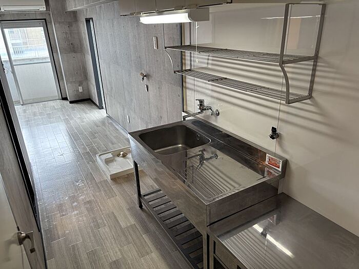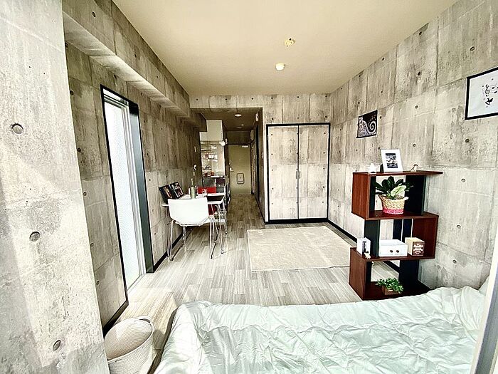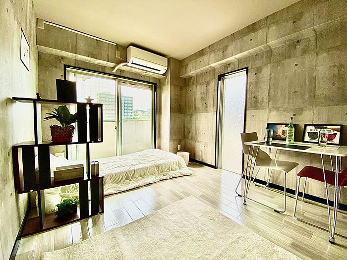 コンクリート風デザイン壁クロスでお洒落部屋作りをお楽しみください。キッチン新品・温水洗浄便座も付きました。タイヨー・銀行・コンビニ・鹿児島駅も徒歩圏内。