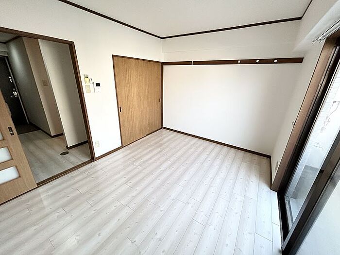 廊下・洋室8畳の床をホワイトフローリングに張替えてより一層明るく感じるお部屋に。2口コンロのシステムキッチン・独立洗面台付きです。お問合せは川商ハウスまでお気軽にご連絡下さいませ。