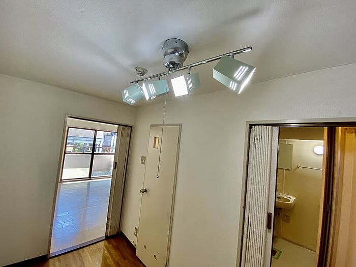 室内物干しで降灰対策。室内洗濯機置場、脱衣所あり。。正方形な8畳で家具の配置もしやすいです。インターネット無料