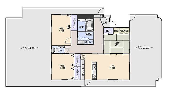 100?超えの広々3LDK。バルコニーも広く桜島が望めます。