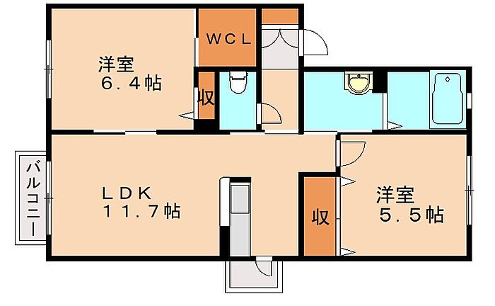 遠賀郡水巻町吉田西4丁目 アパート 2LDK/1階