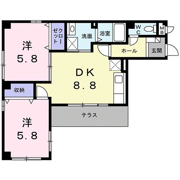 カーサ・ソレアード 104 2DK/1階